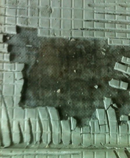 Mold on mesh under ceramic tiles.